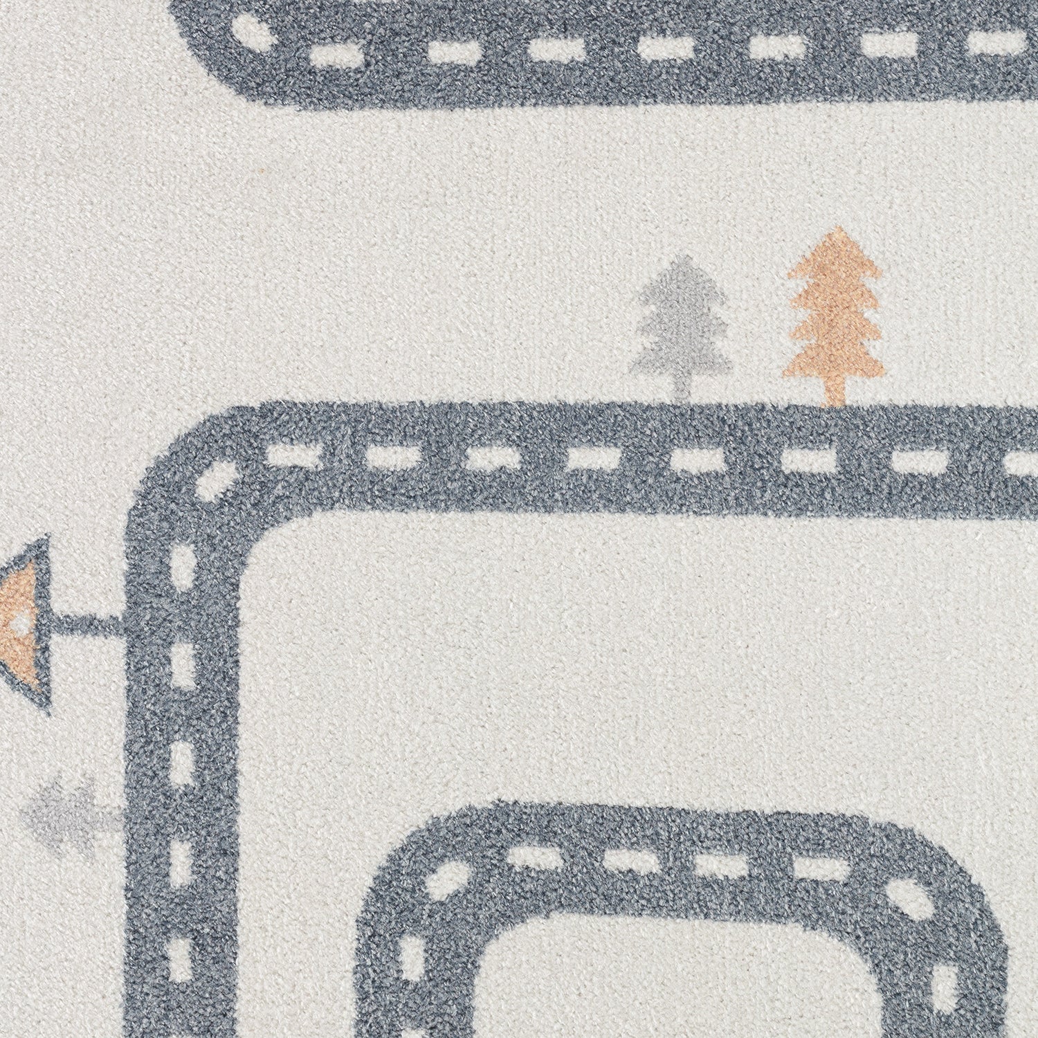 Vroomville Kids Machine Washable Beige/Grey Bedroom Rug