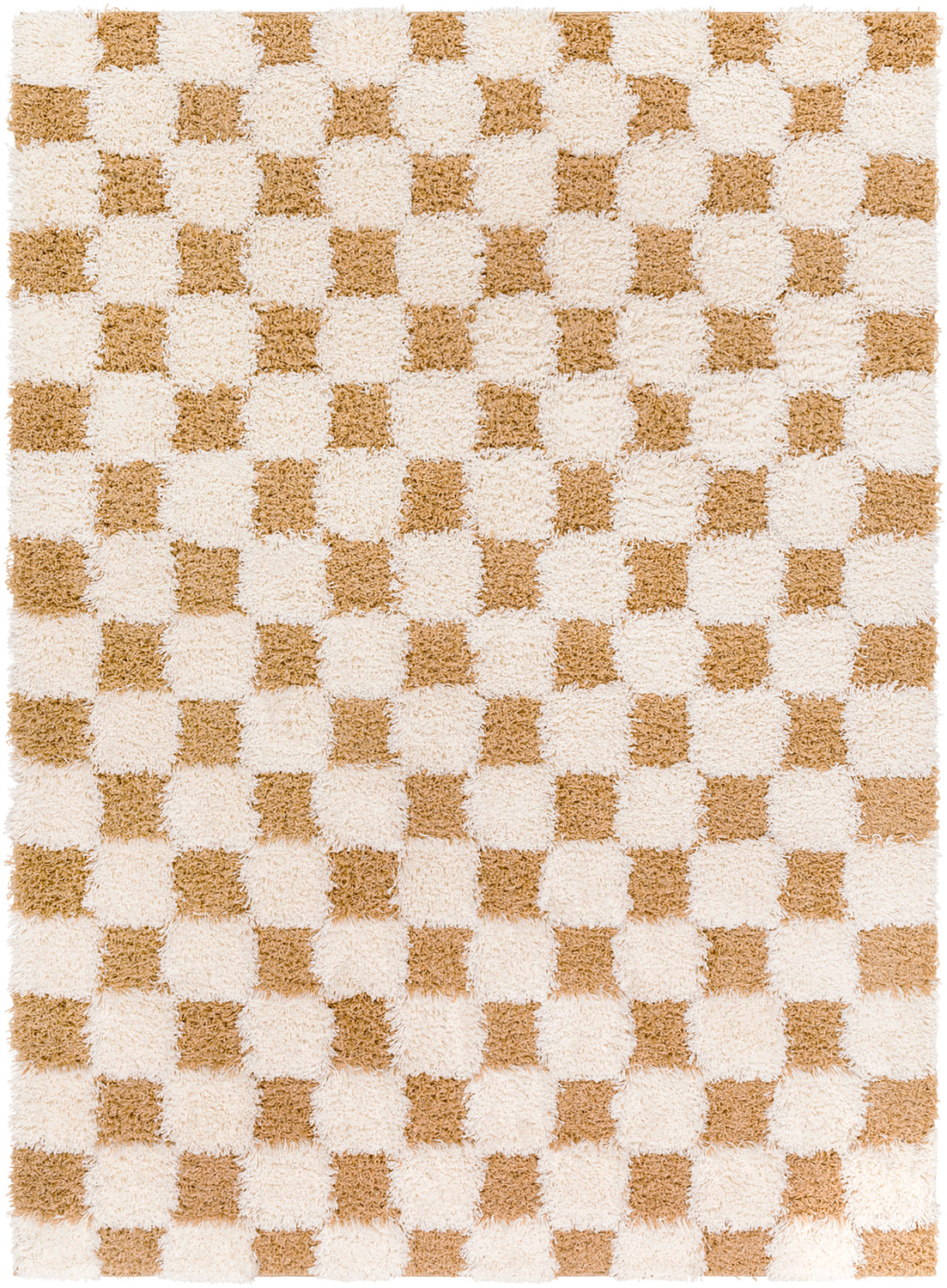 Willa Shaggy Modern Plush Pile Mustard Checkered Rug